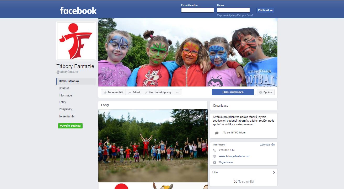 Vytvořili jsme novou facebookovou stránku, kde budeme přidávat další fotky, krátké aktuality a komentáře. Přečtěte si příspěvky našich táborníku a jejich rodičů, nastavte si sledování novinek, ať vám nic neunikne. Facebook/TaboryFantazie
